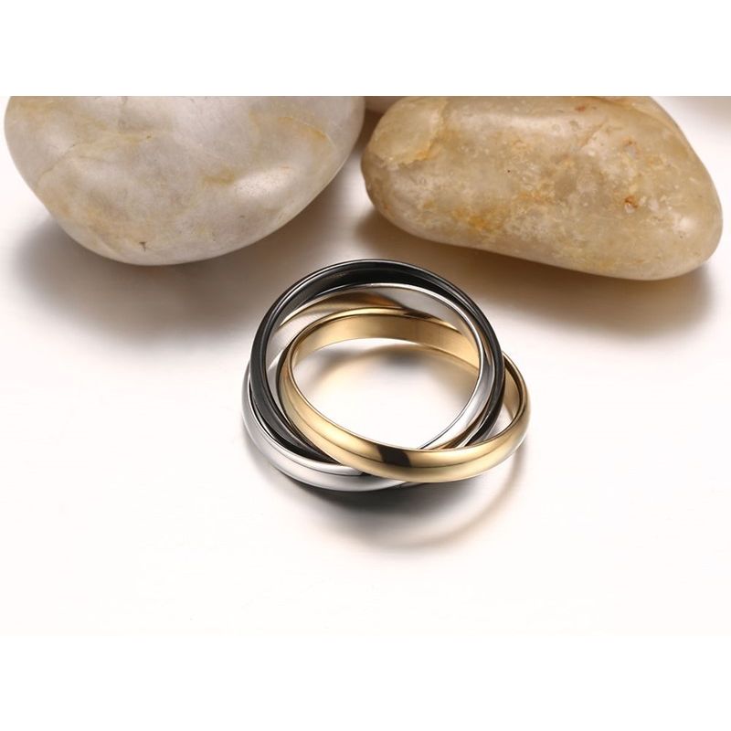 3 טבעות פלדה מחוברות בצבעי כסף שחור וזהב 3 מ"מ כל אחת
