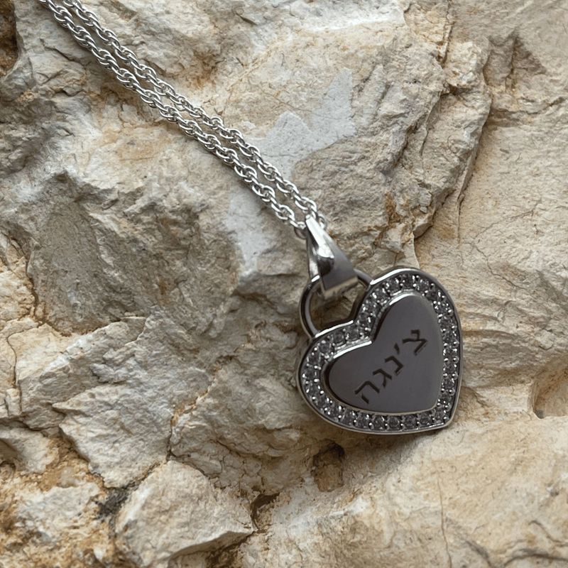 שרשרת לב משובצת מכסף אמיתי 925 עם הקדשה אישית לחריטה