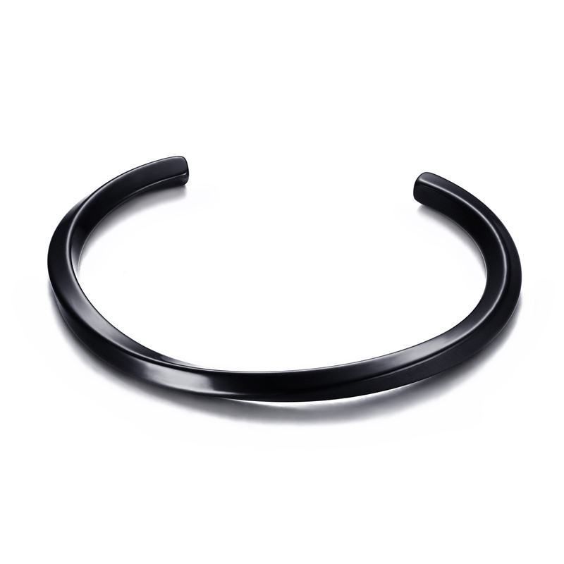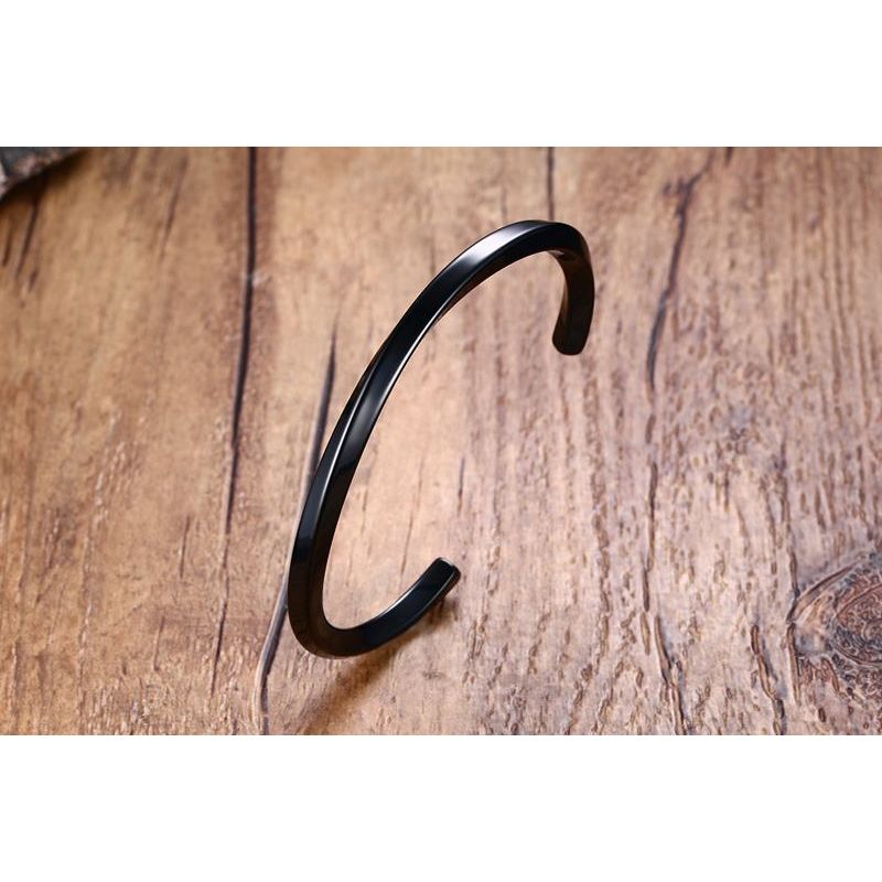 צמיד מסובב קשיח פתוח מפלדת אל חלד בצבע שחור פתח 6 ס"מ 4 מ"מ עובי