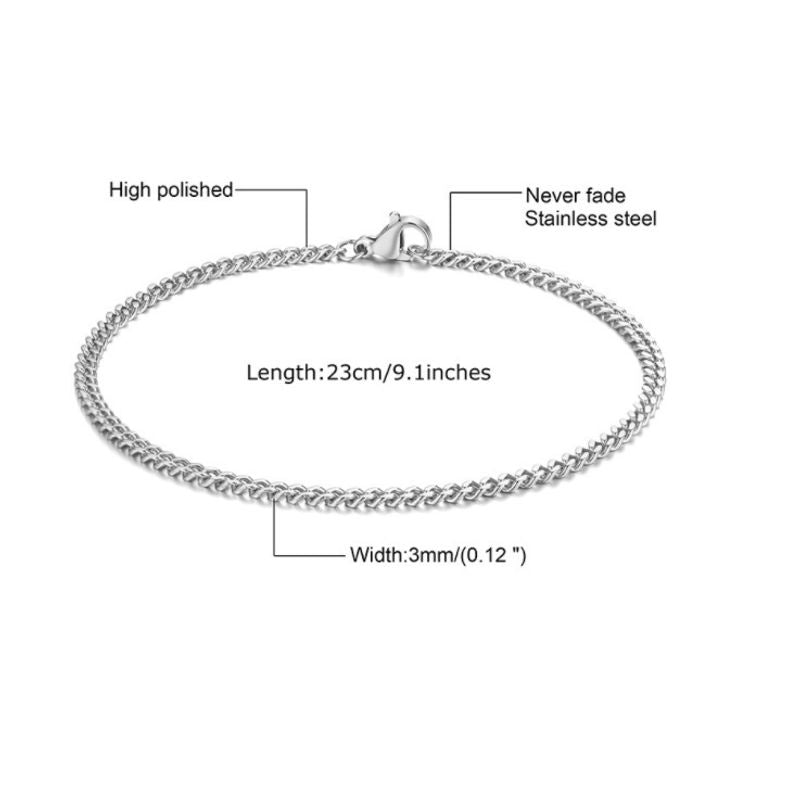 צמיד חוליות כסוף עדין מאוד 3 מ"מ
