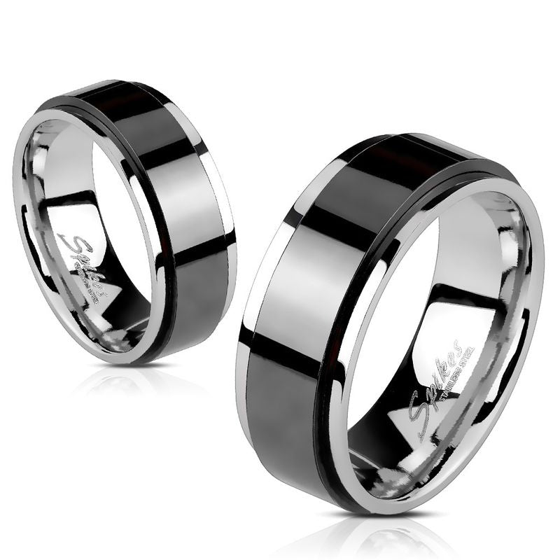 טבעת כסופה עם פס שחור מסתובב לחריטה פלדת אל חלד בציפוי IP בצבע שחור מרכז