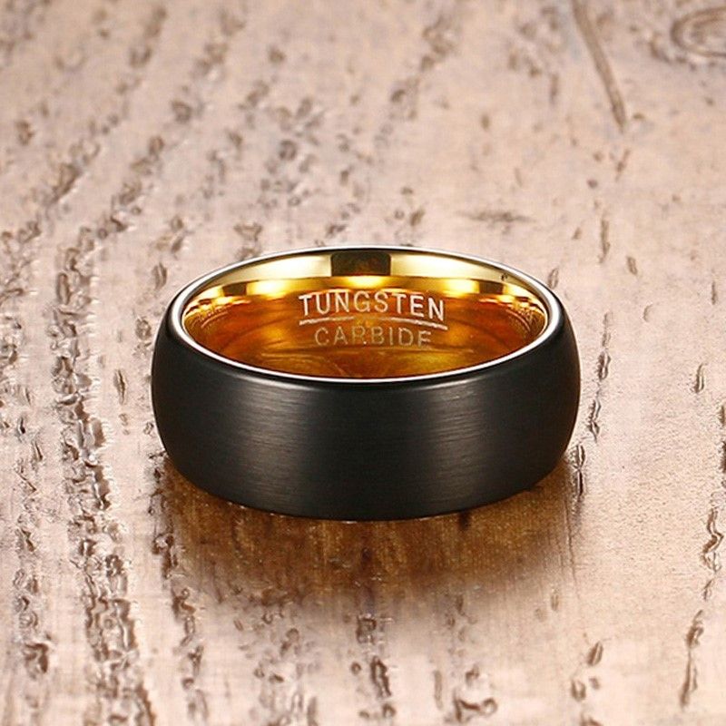 טבעת טונגסטן שחור מט חלק עם זהב בפנים הטבעת