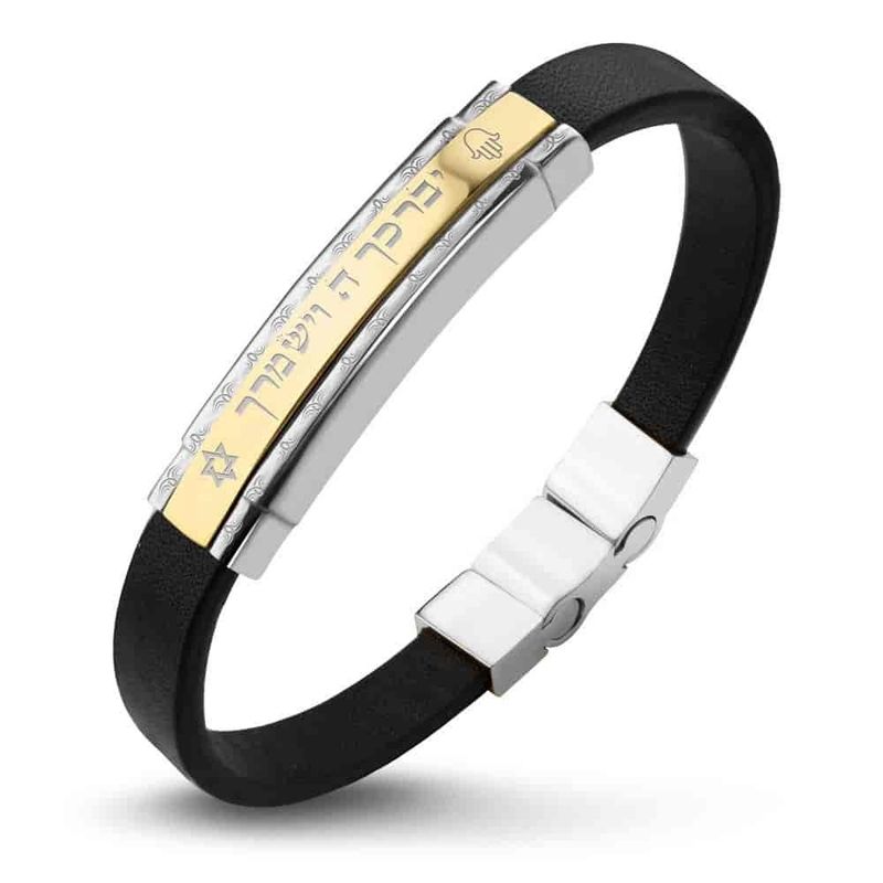 צמיד יברכך השם מעור סינטטי בציפוי זהב