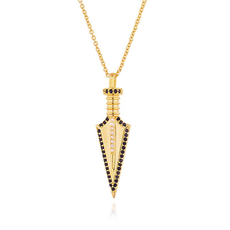תליון בצורת חץ עשוי מגולדפילד (ציפוי זהב) בשיבוץ אבני זירקון שקופות ושחורות,