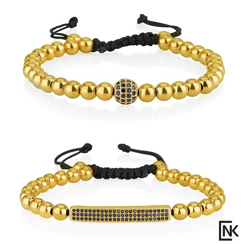 סט צמידי כדורים מוזהבים מפלדת אל חלד