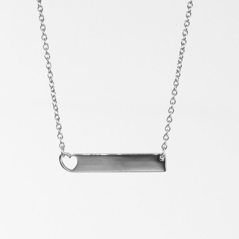 שרשרת כסופה מפלדת אל חלד עם פלטה חיתוך לב באורך 45-50 ניתנת לחריטה