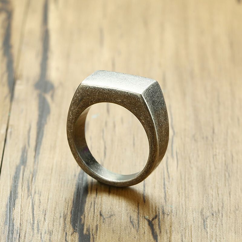 טבעת פלדת אל חלד בצבע כסף מושחר בצורת מלבן לחריטה קדמית