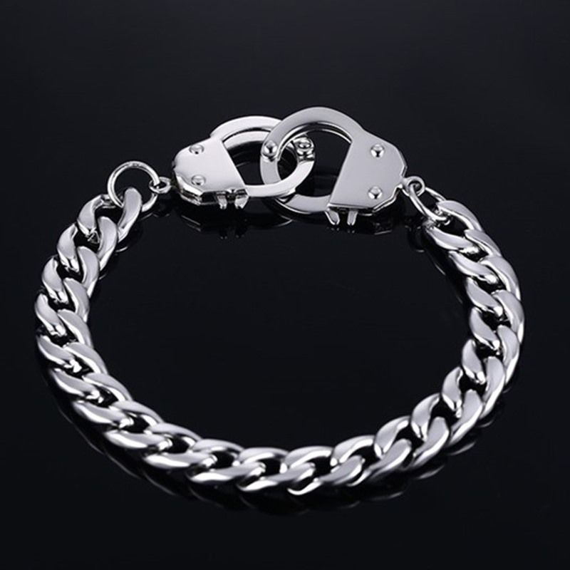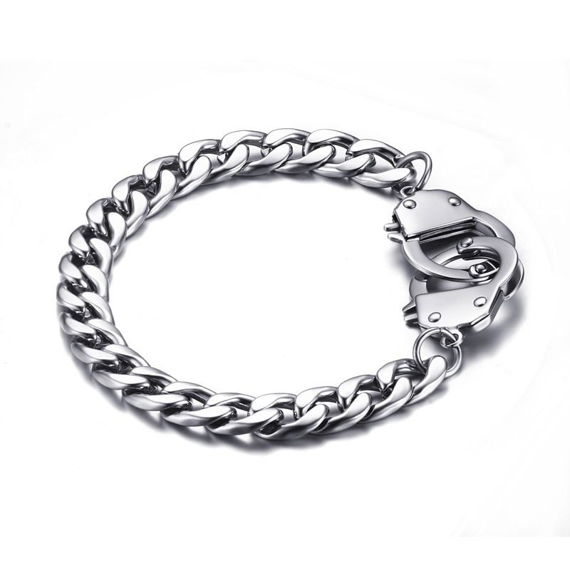 צמיד חוליות כסוף פלדת אל חלד עם סוגר אזיקים