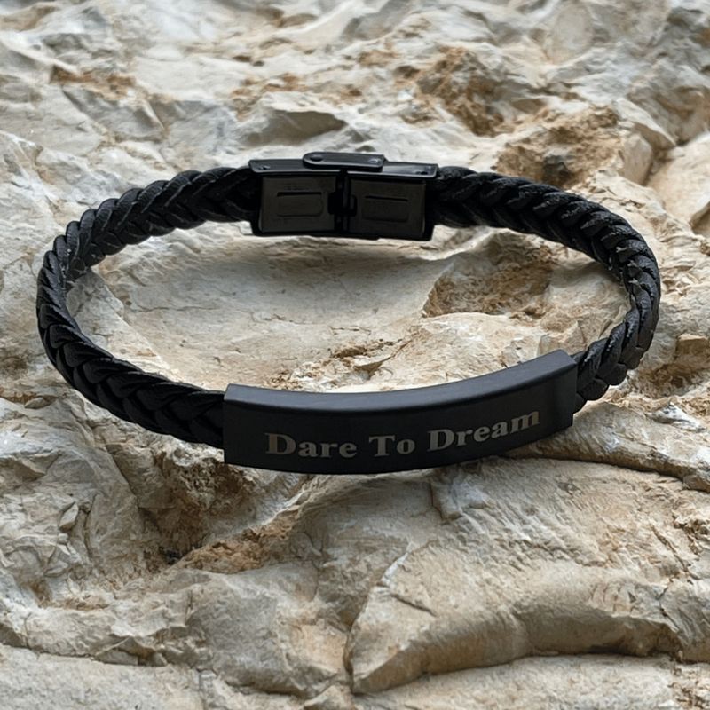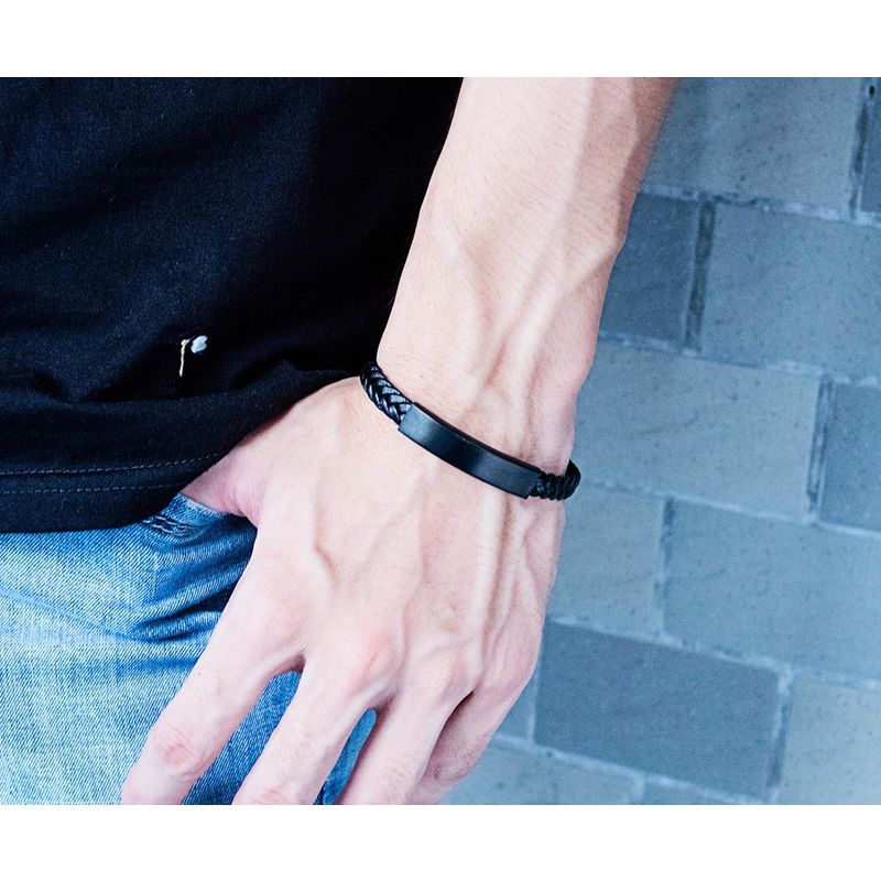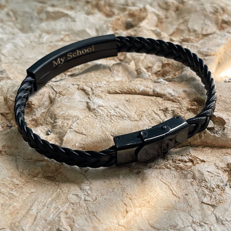 צמיד עור שחור לחריטה אישית