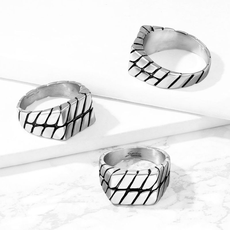 טבעת חותם מפלדת אל-חלד בעיצוב יווני