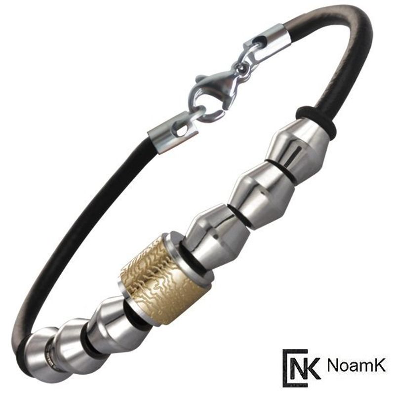 צמיד עור וחרוזי פלדה בזהב וכסף