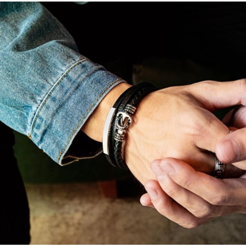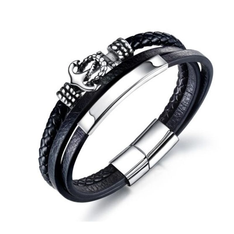 צמיד עור סינטטי עוגן עם חריטה במתנה