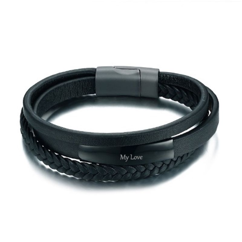 צמיד עור סינטטי פלטה שחורה לחריטה דגם a5