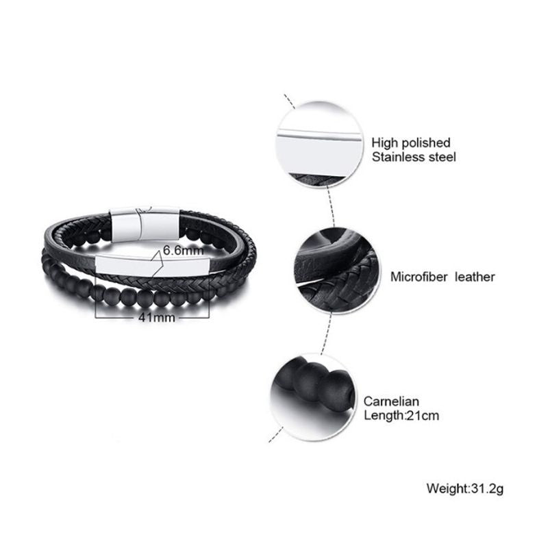 צמיד עור סינטטי משולב חרוזים לחריטה