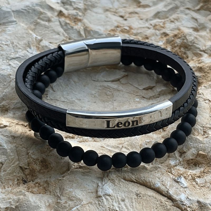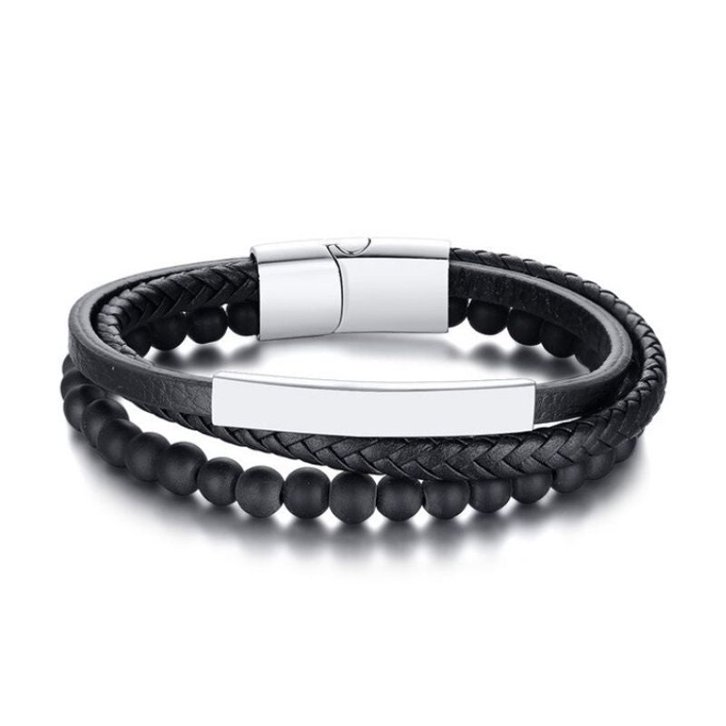 צמיד עור משולב חרוזים לחריטה