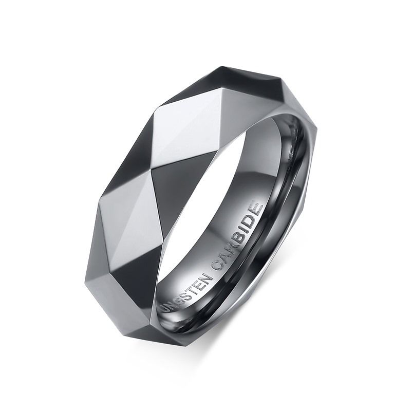 טבעת טונגסטן מעויינים תלת מימד בצבע כסף