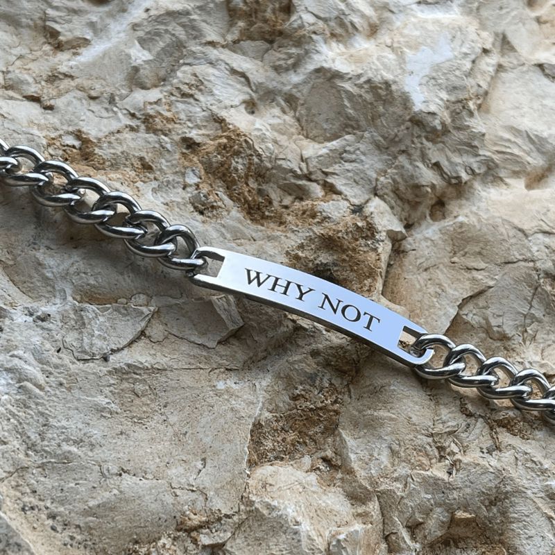 צמיד חוליות כסוף קלאסי לחריטה עשוי פלדת אל חלד