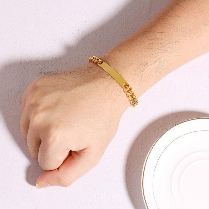 - צמיד חוליות מוזהב לגבר עם לוח לחריטה מפלדת אל-חלד