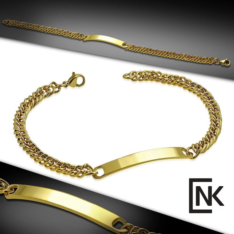 צמיד חוליות מוזהב מפלדת אל חלד עם משטח לחריטה