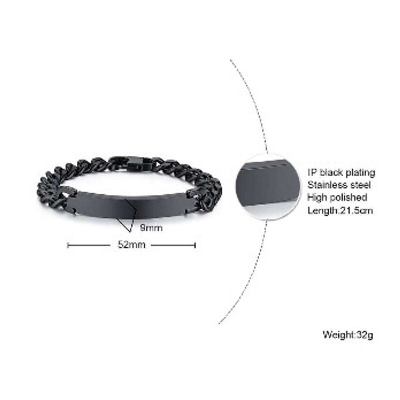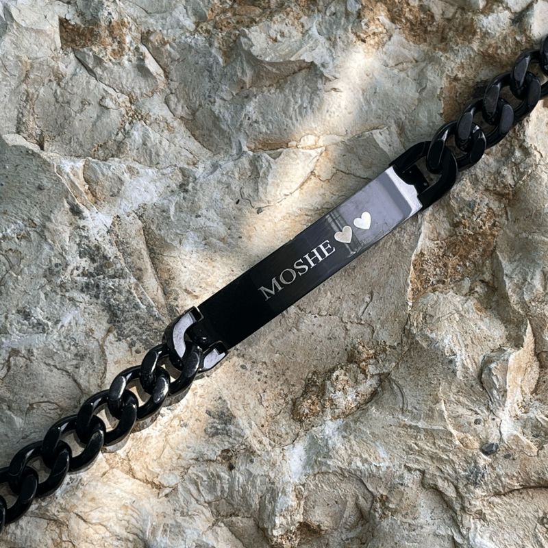צמיד חוליות שחור מפלדת אל חלד לחריטה