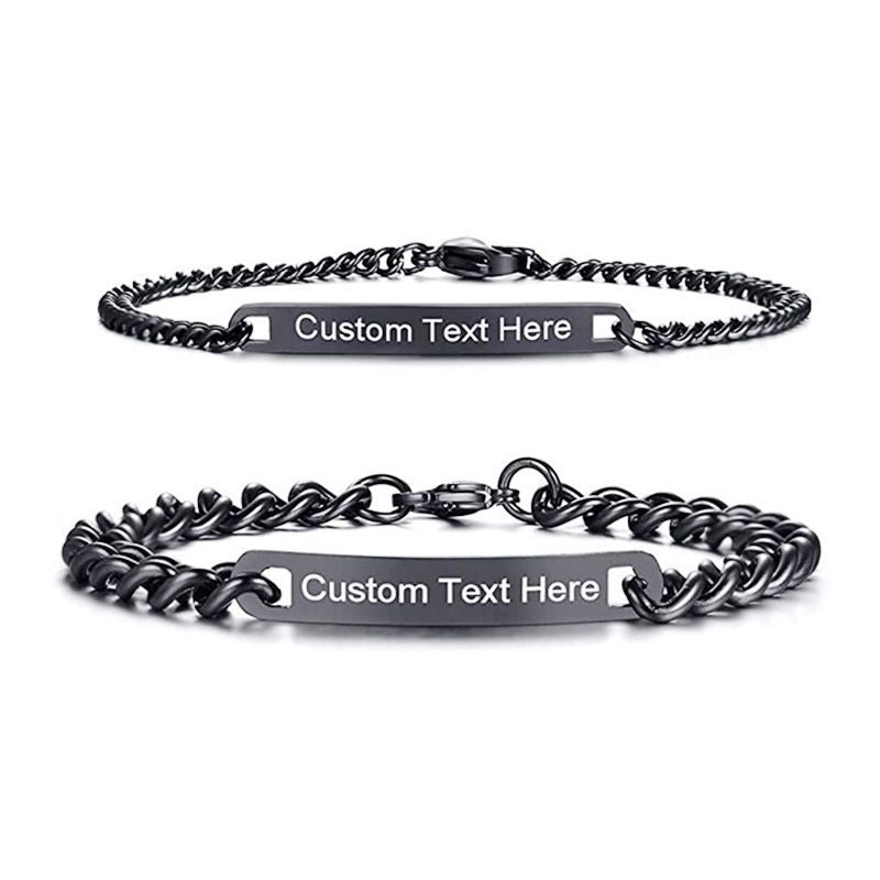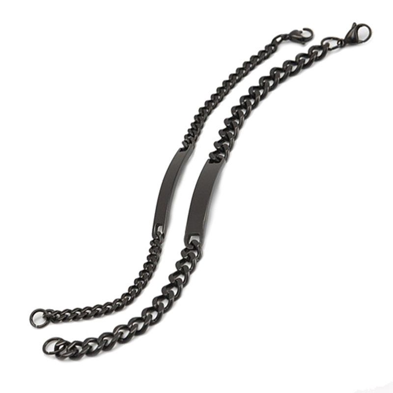 צמיד חוליות שחור מפלדת אל חלד עם משטח לחריטה