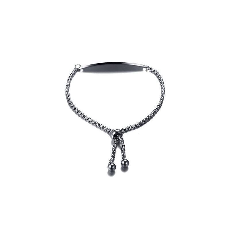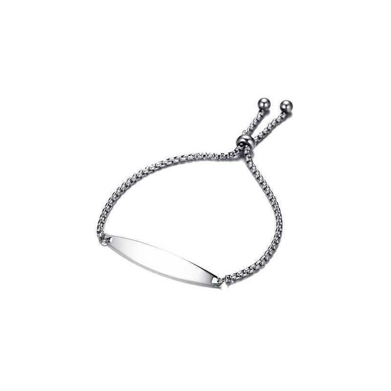 צמיד כסוף מפלדת אל חלד עם משטח אובלי לחריטה וסוגר מתכוונן