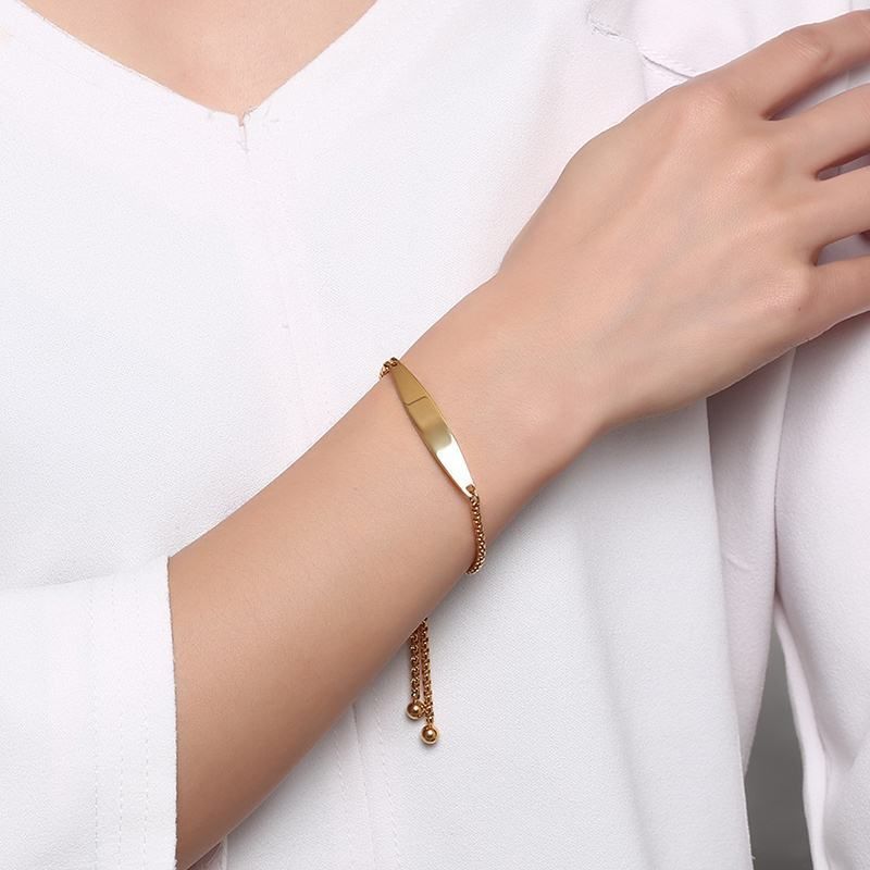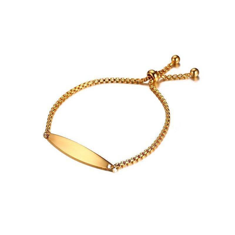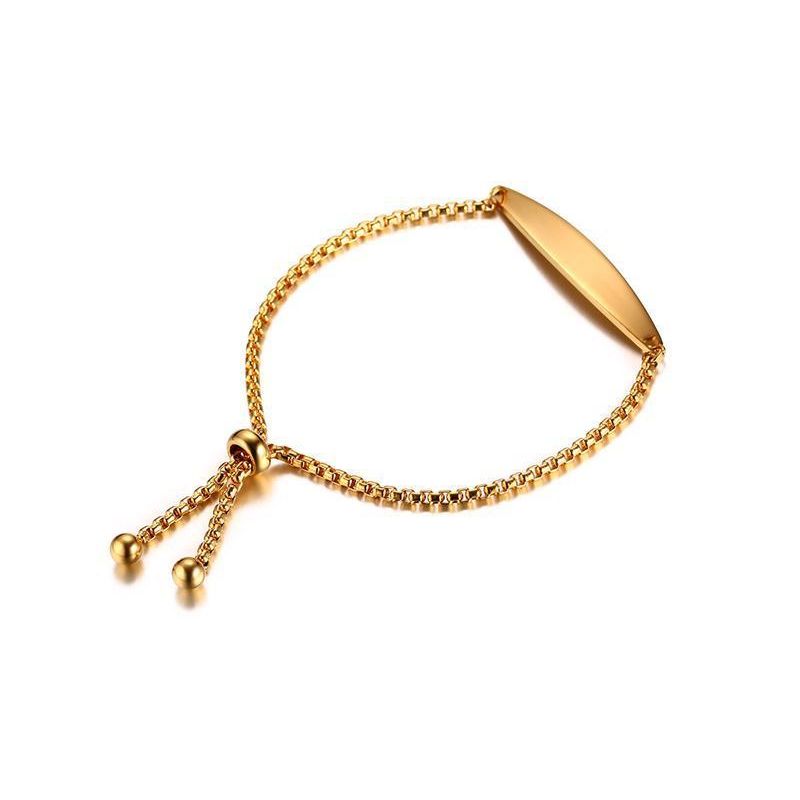 צמיד מוזהב עם משטח אובלי לחריטה וסוגר מתכוונן עשוי פלדת אל חלד