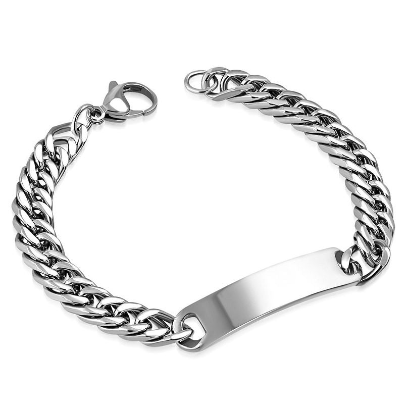 צמיד פלדת אל חלד כסוף עם משטח לחריטה