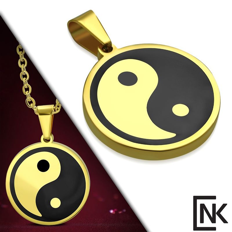 תליון יין ויאנג מוזהב מפלדת אל חלד לחריטה